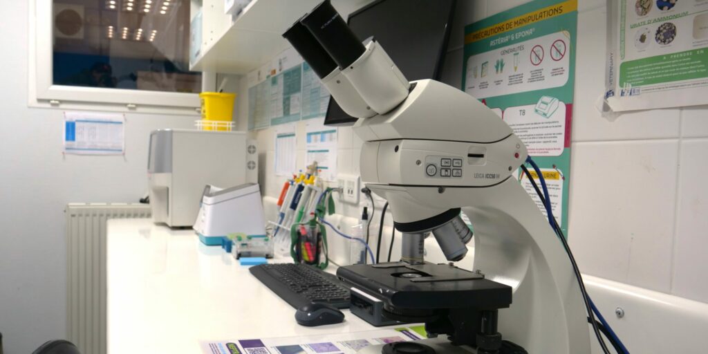 Notre laboratoire d’analyses sur place nous permet d’obtenir rapidement des résultats fiables pour orienter au mieux les diagnostics. Nous disposons de nombreux équipements, incluant des appareils de biochimie, de numération formule sanguine (NFS), de PCR, ainsi que d’un microscope et d’autres dispositifs de mesures spécifiques (ionogramme, dosages hormonaux, temps de coagulation etc.) Cette autonomie nous garantir une prise en charge rapide, précise et adaptée à l’état de santé de votre animal.